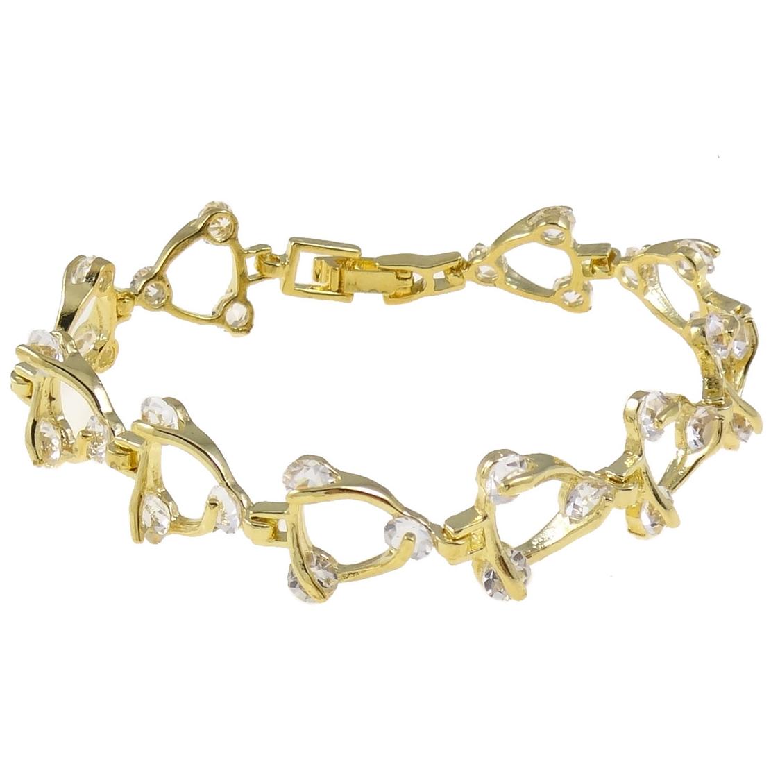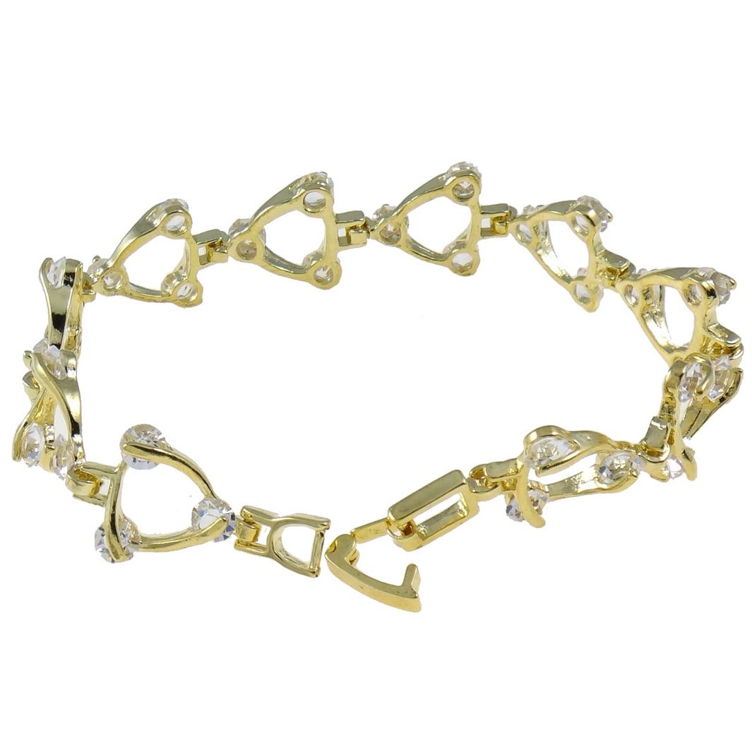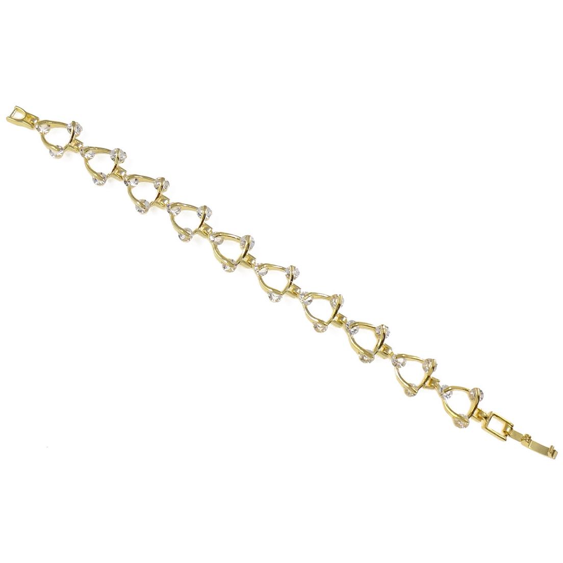 Elegant bracelet made with 30 genuine, faceted CZ stones, all set with gold tone finish overlay. Vintage style of the 1930’s.