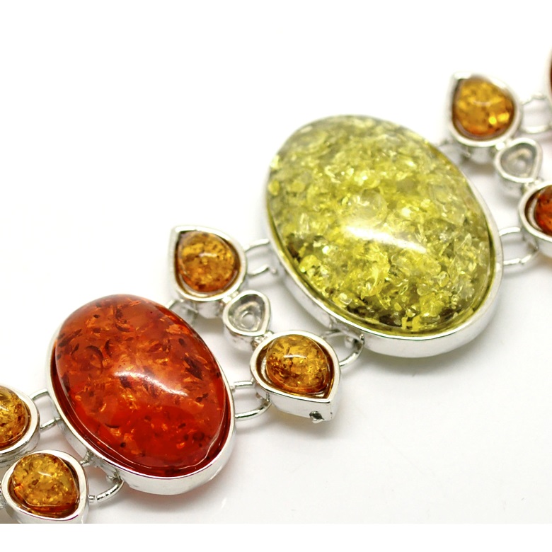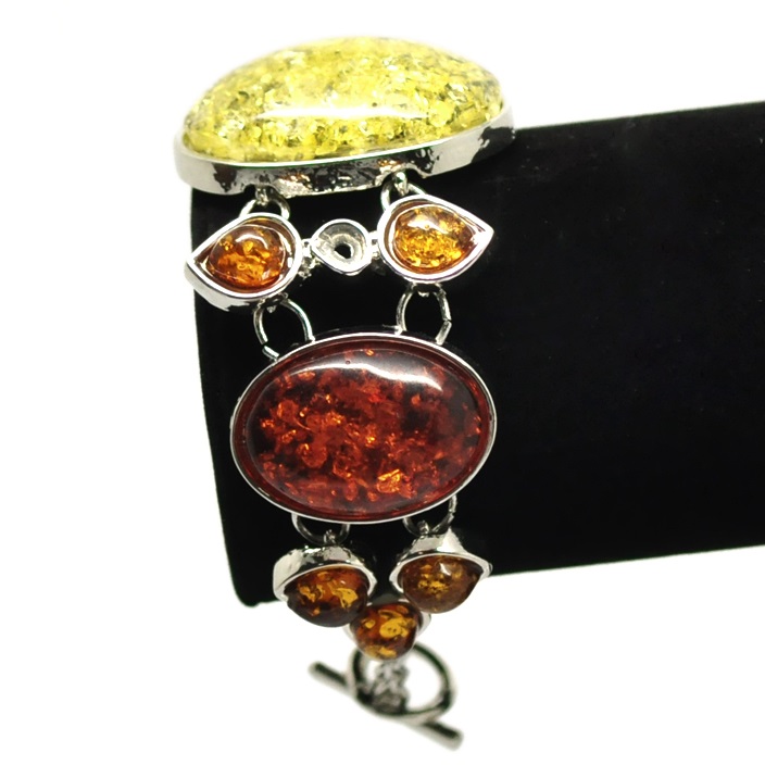 Silver tone metal bracelet made with thirteen high-quality, faux triangular Amber stones.