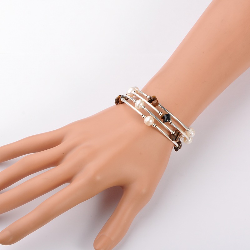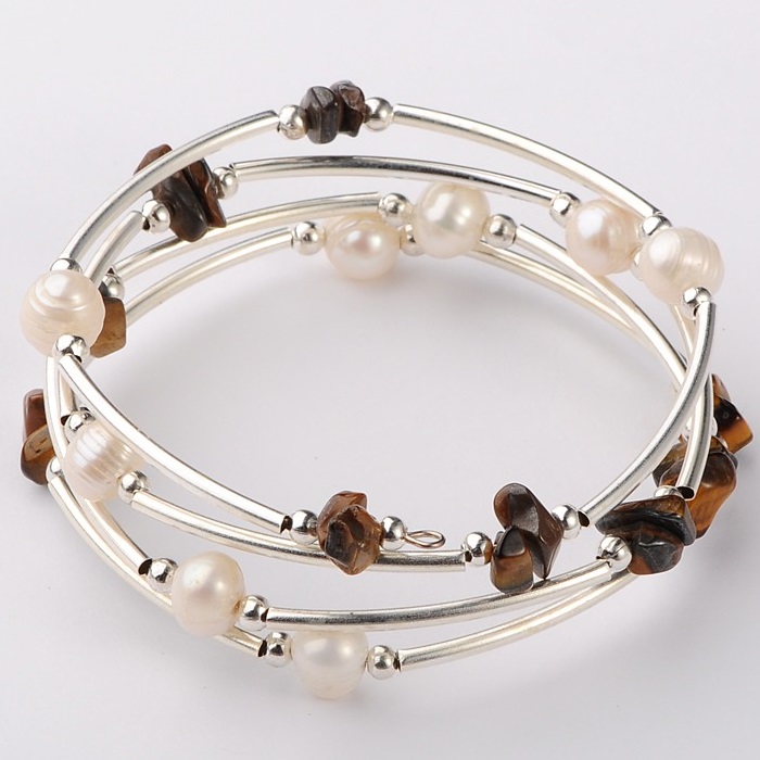 Accented with genuine Tiger's Eye chips, Freshwater Pearls and tube beads.
