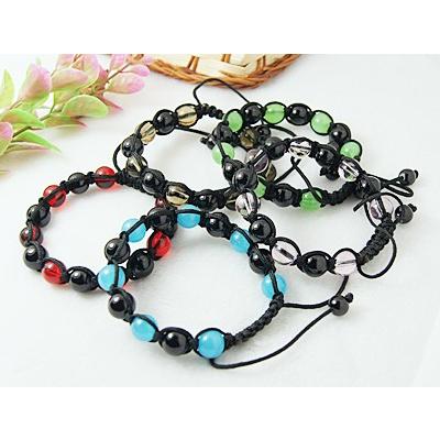 Adjustable shamballa bracelets made with fifteen solid glass beads, alternating black and mixed with black ends.