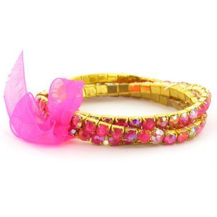 Stretch bracelet made of 38 faux iridescent Aurora Borealis rhinestones.