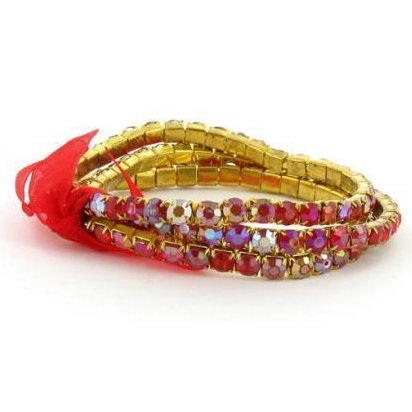 Stretch bracelet made of 38 faux iridescent Aurora Borealis rhinestones.