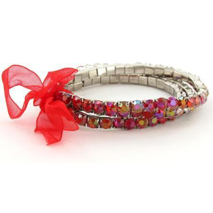 Stretch bracelet made of 38 faux iridescent Aurora Borealis rhinestones.