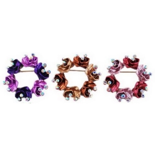 Vintage style brooches in various colors (shown and not shown) featuring a garland form with iridescent Aurora Borealis rhinestone accents.