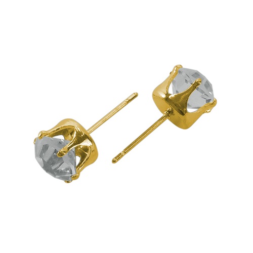 Prong-set, 8mm faceted crystal studs in gold tone brass setting.