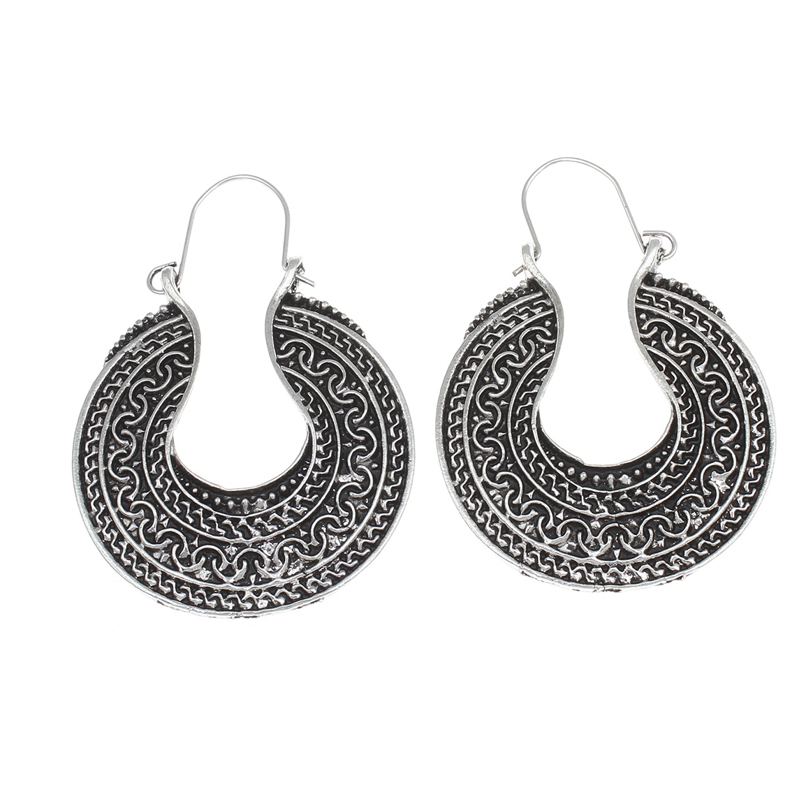 Beautiful, vintage silver tone earrings in a saddlebag form with high-relief beading and filigree scrolls.