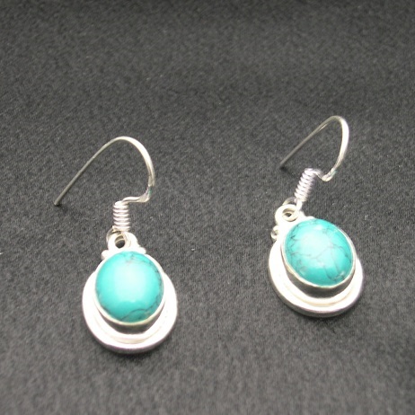 Earrings made of Sterling Silver with genuine, polished Blue Turquoise oval stones.