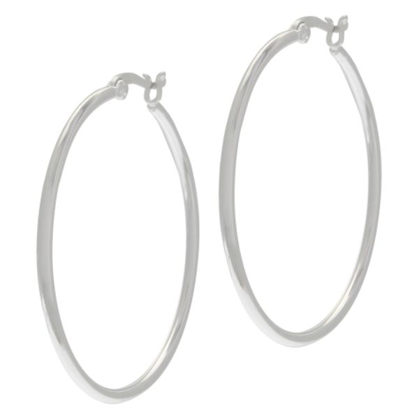 A timeless staple of any wardrobe, these polished sterling silver hoop earrings are always chic and have just enough sparkle.