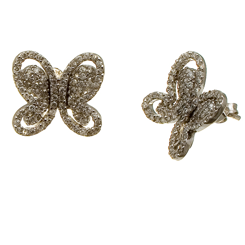 Solid sterling silver earrings in the form of butterflies, fully studded with inset white CZ, faceted stones with back breathing holes for maximum sparkle.