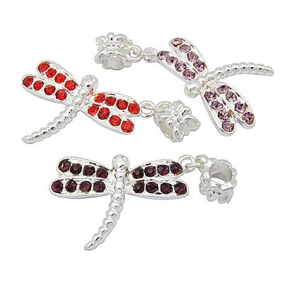 Mixed figural charms in the form of dragonflies with rhinestone-studded wings.
