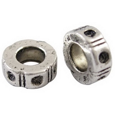 Tibetan Silver spacer bead featuring a dot and stripe design.