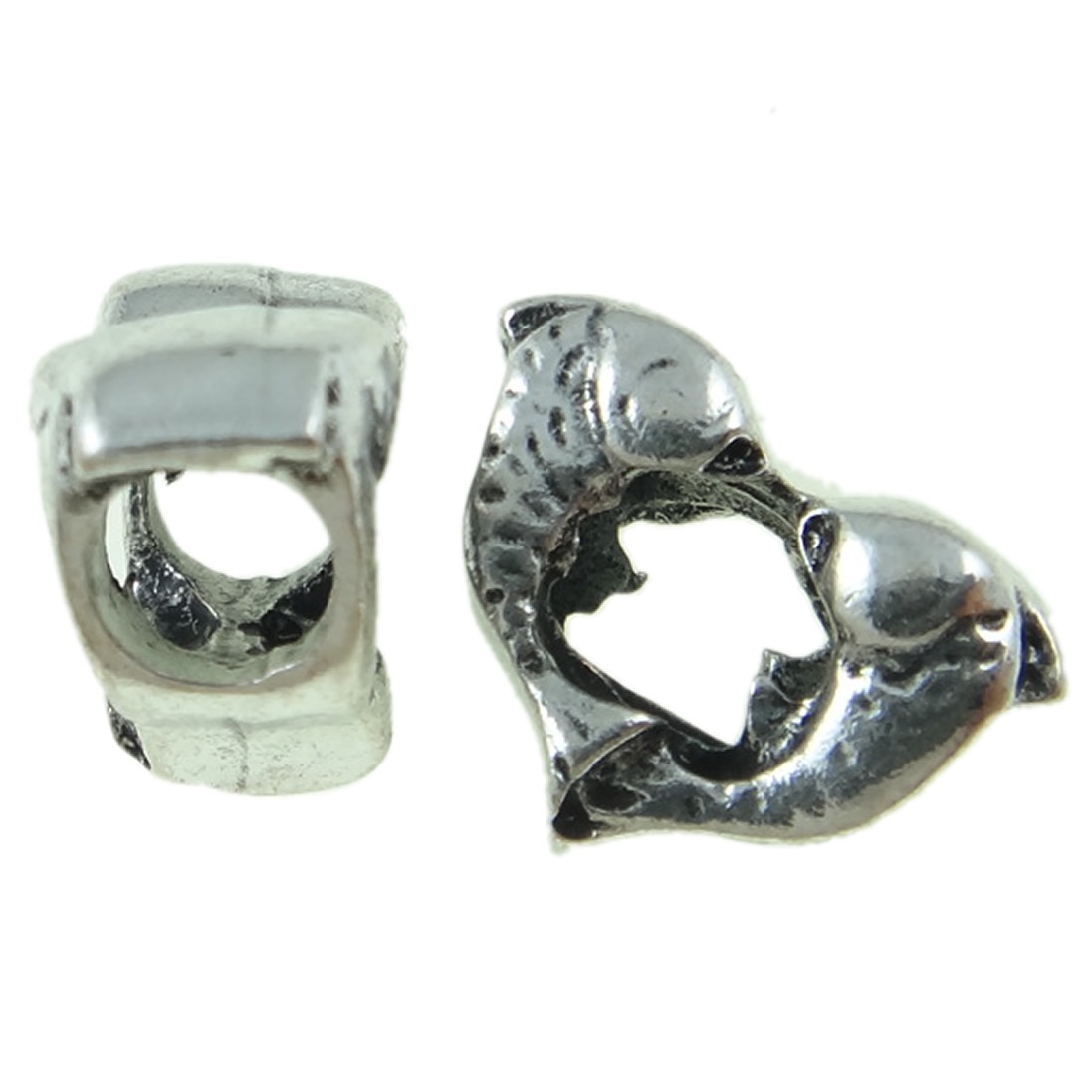Tibetan Silver bead in the figural form of two fish, the Zodiac Pisces image. Dimensions: 15.5mm with 5mm hole.