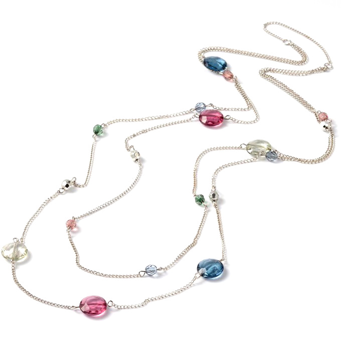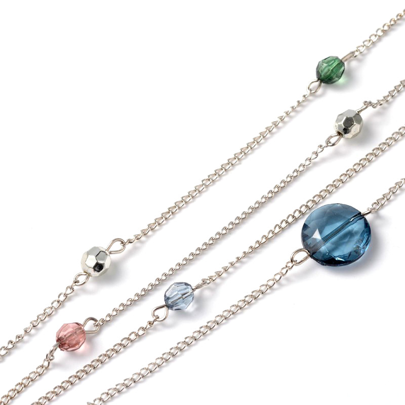 Retro Style silver tone chain necklace with faceted glass beads spaced at regular intervals.