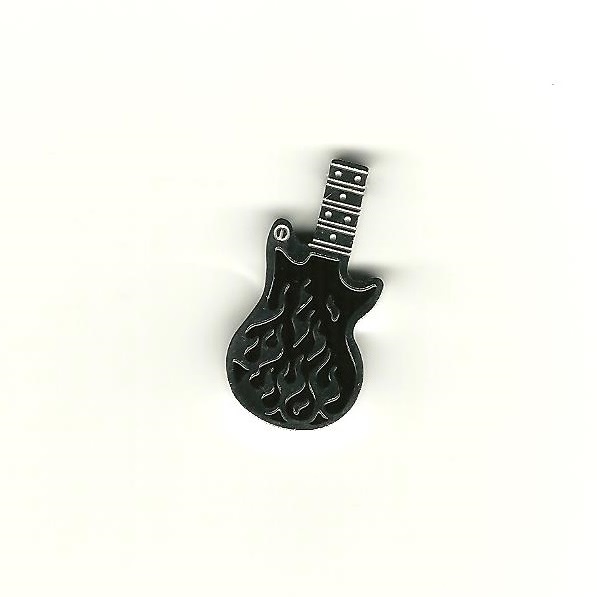 High Quality, 316L Stainless Steel pendant in a guitar form with black enamel flame decor.
