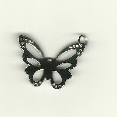 High Quality, 316L Stainless Steel pendant in the form of a butterfly with reticulated wings and 16 inset CZ stones with open backs.