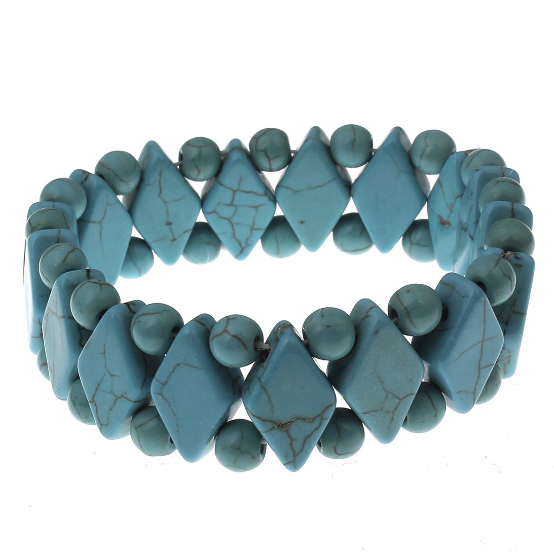Geometric blue Turquoise stretch bracelet made of diamond and circle beads.