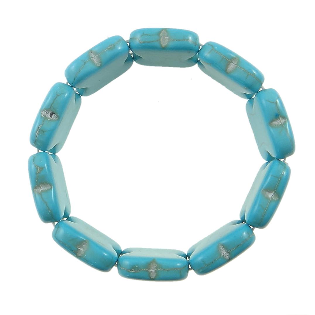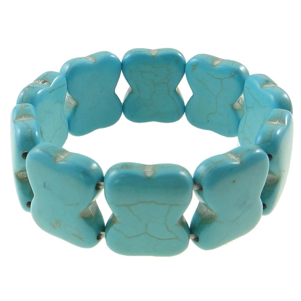 Stretch bracelet made of ten elongated quatrefoil, turquoise stone beads.