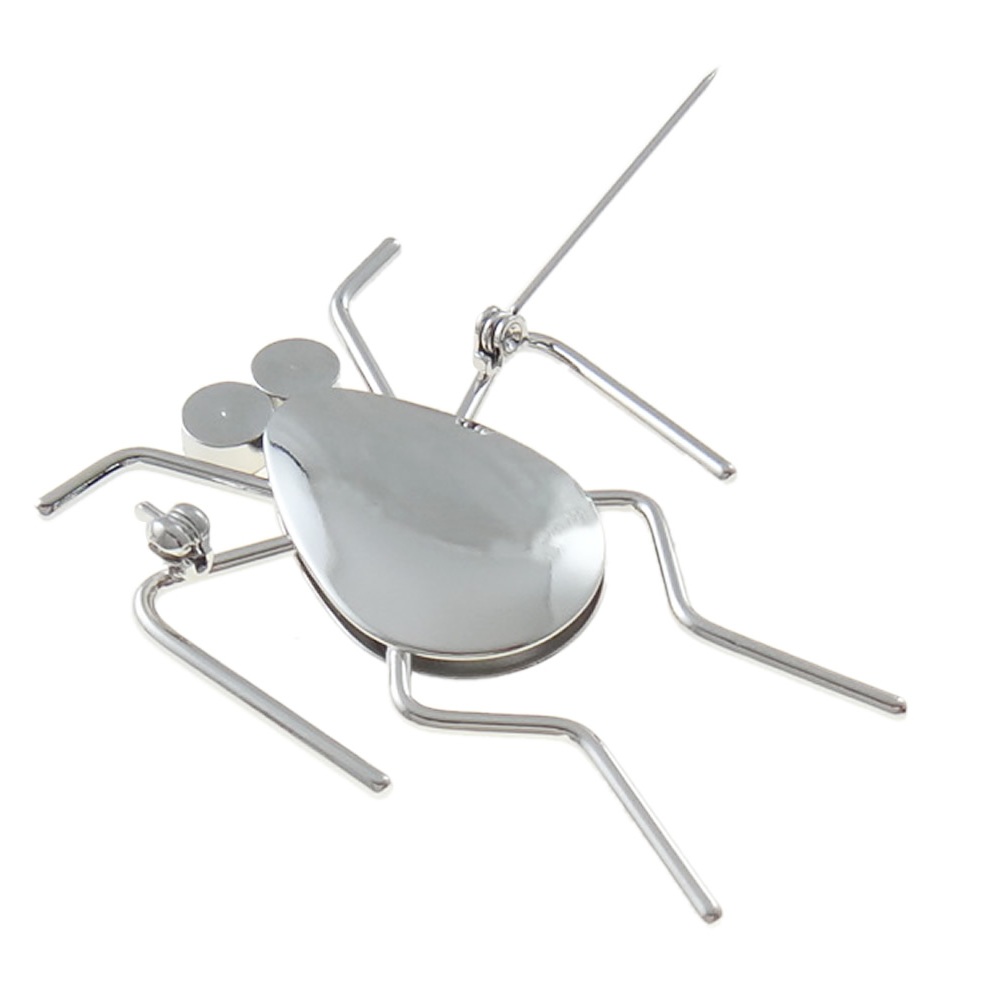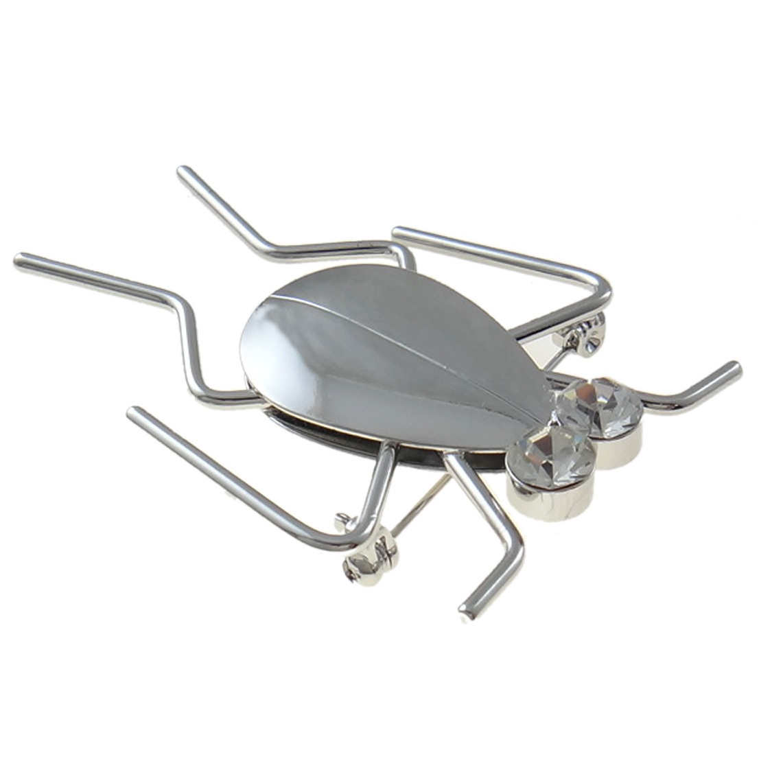 Mirror-finished metal figural brooch in the form of a spider with two large, genuine faceted rhinestone eyes.