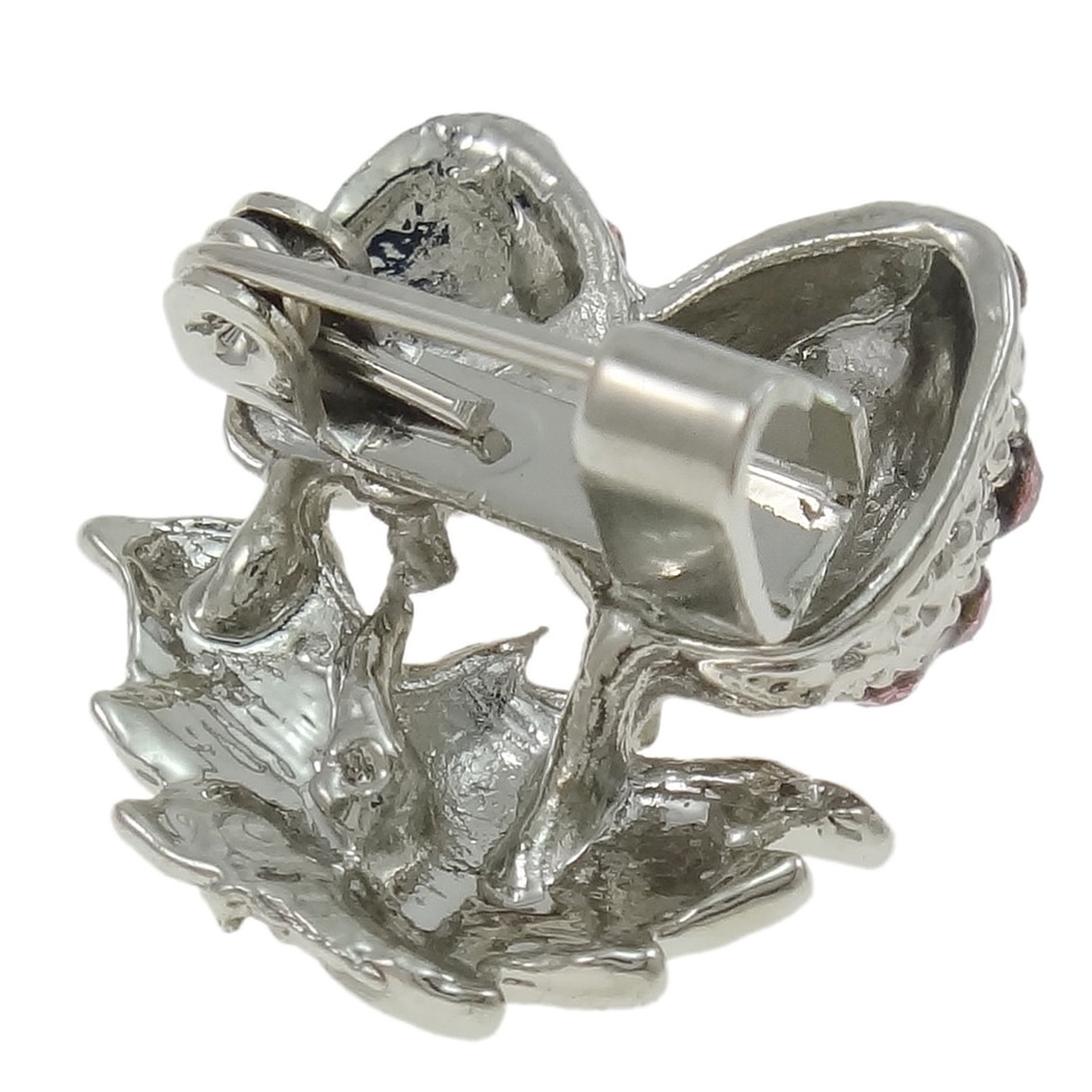Small, silver tone brooch studded with 28 genuine Pink Rhinestones.