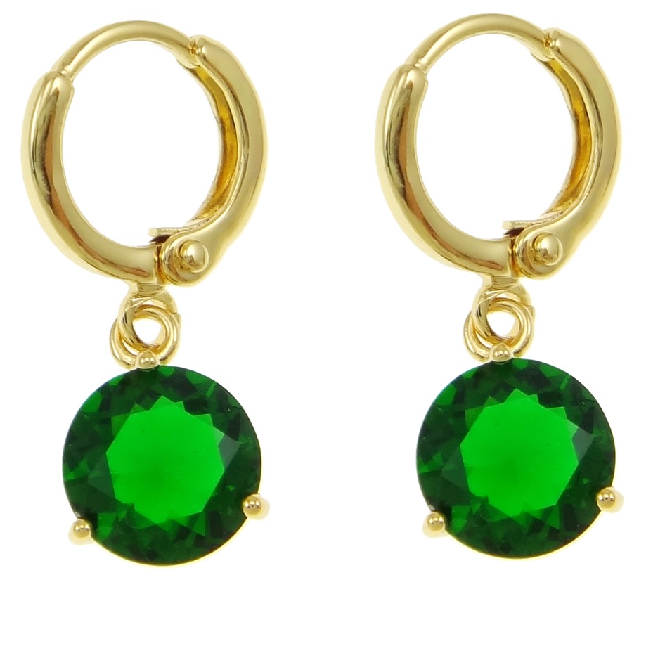 Dangle earrings in 18K gold overlay with a Tiffany-set, open back 7mm CZ stone. A bit of glam and sophistication.