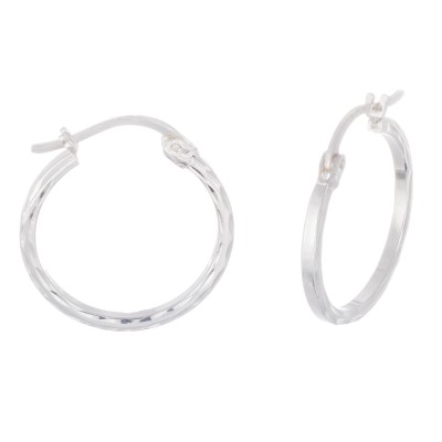 Sterling Silver earrings featuring a diamond-cut hoop form with saddle back clasp.