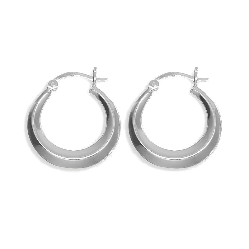 Sterling Silver earrings featuring an attenuated circular form in the knife's edge style with saddle back clasp.