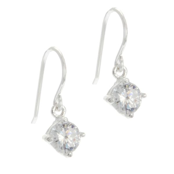 Sterling Silver dangle earrings with a Tiffany-set, faceted clear CZ stone. Post backs.