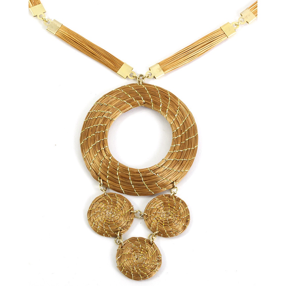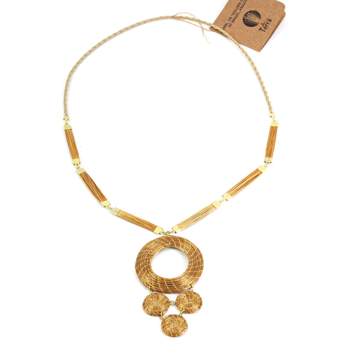Through the use of indigenous fiber materials like buri and organic golden grass, found only in Brasil, Art da Terra creates handcrafted costume and fashion jewelry and handbags. The technique of intertwining golden grass, natural fibers and textiles into intricate designs by hand adds distinctive character to Art da Terra's creations. Own a piece of Brasil with this single strand bangle set made from golden straw found in the Amazon.