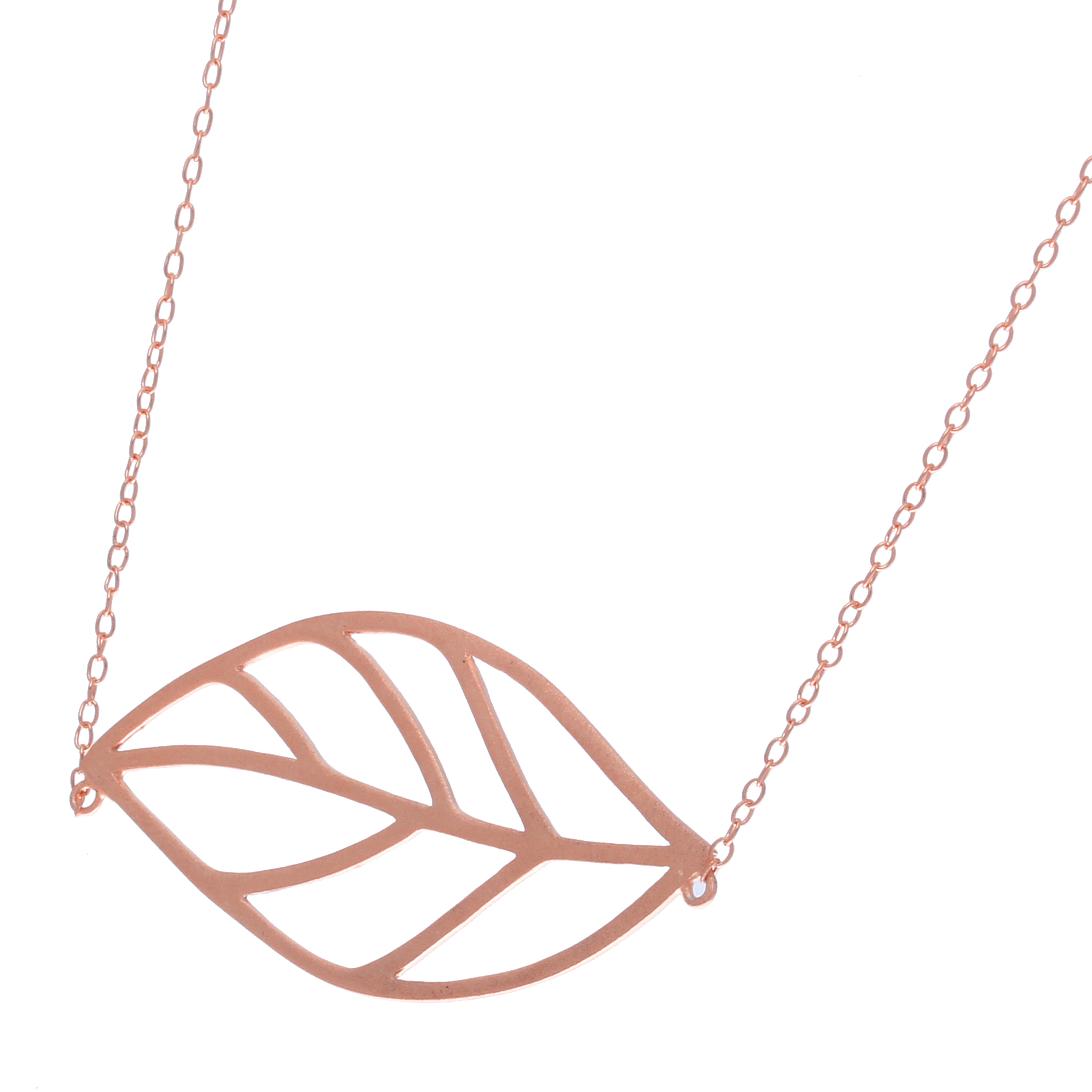 Simple, elegant necklace made of solid Sterling Silver with 14K Rose Gold Vermeil overlay. Nature-inspired with a reticualted leaf on rolo chain.