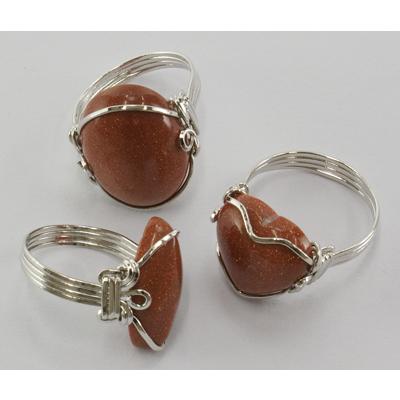 Hand-made, silverplated rings with Gold Stone (aka Aventurine) cabochons.
